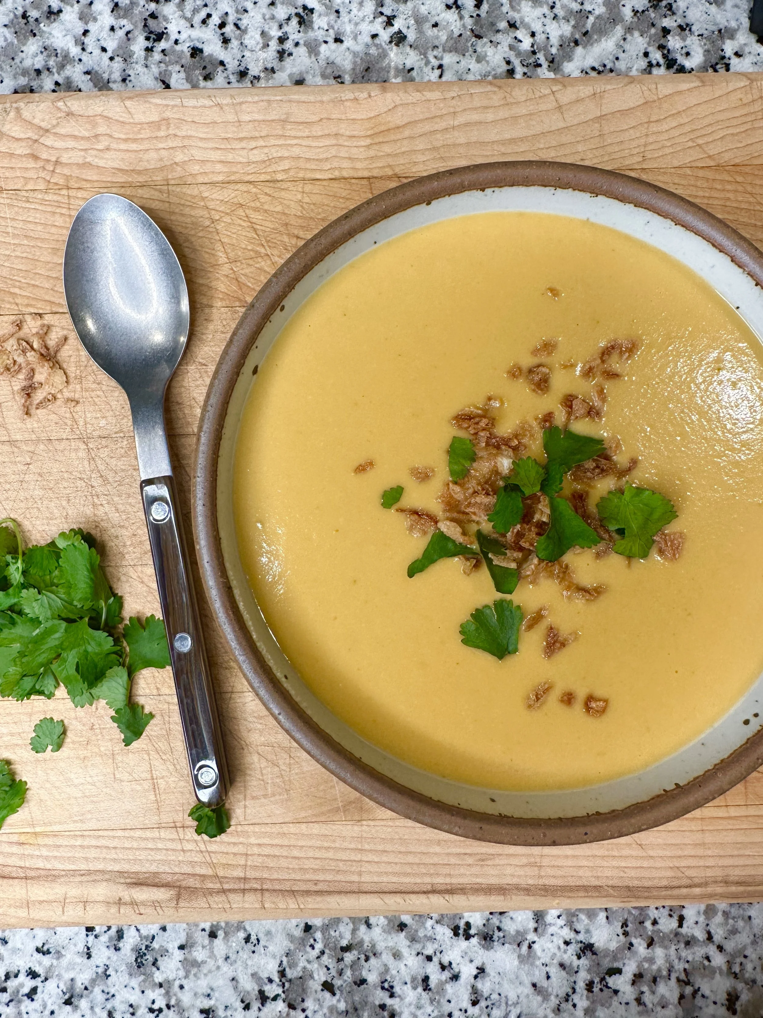 A warming, savory, creamy soup that can be vegan as well as vegetarian (see notes below for substitutions).